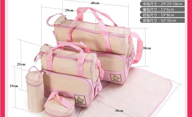 5PCS/Set Baby Diaper Bag Pregnant Mother Bags multifunctional Kid Stroller Bags Nappy Baby Bags For Mom