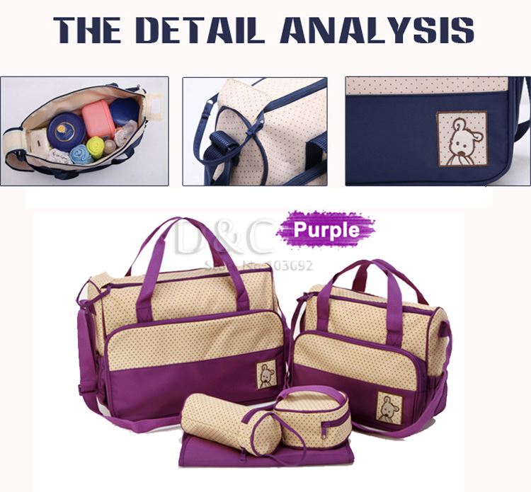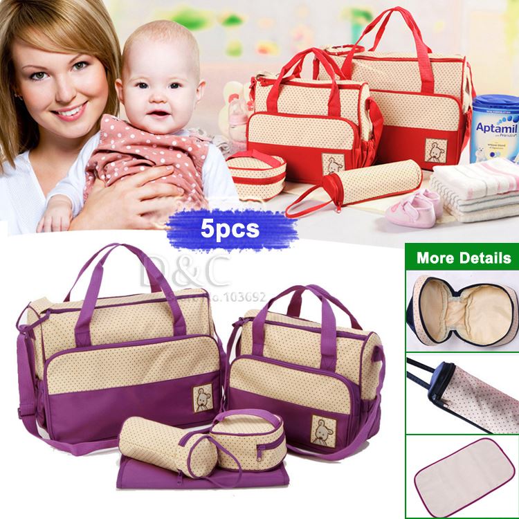 5pcs/set Multifunctional baby diaper bags baby nappy bags maternity bags messenger bag lady handbag tote diapering